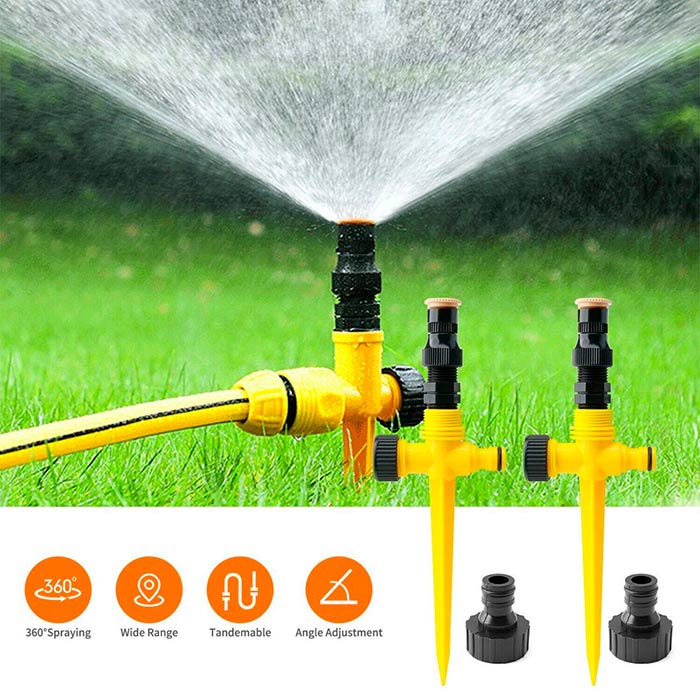Innaffia il tuo giardino, fiori, prato e altre piante in modo uniforme! Cosa rende questo sistema di irrigazione così speciale? Il fatto che ha 2 attacchi per tubo da giardino e irrigazione in tandem, e l’ugello orientabile può essere regolato per spruzzare acqua a 90°, 180° o 360°!