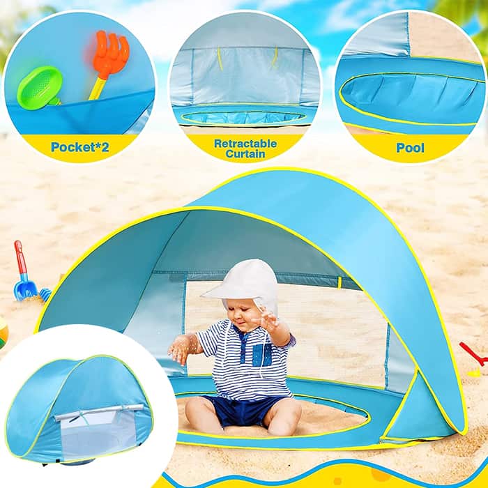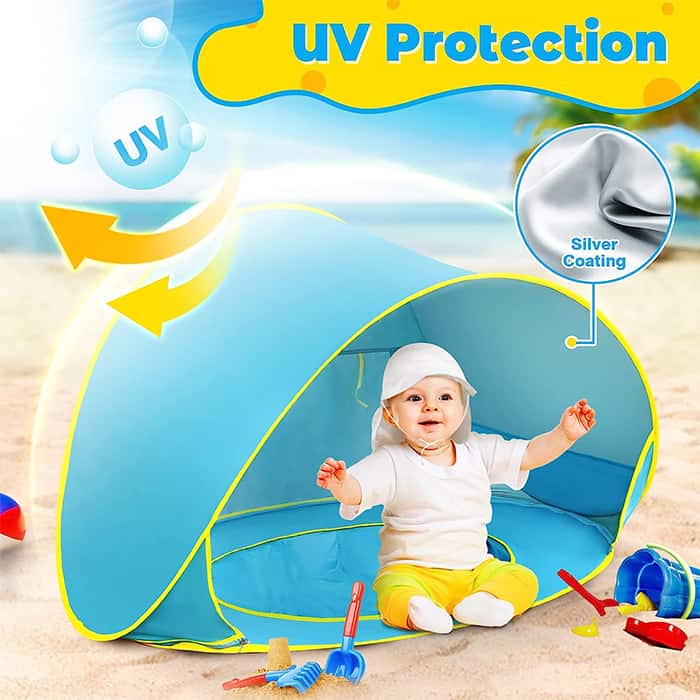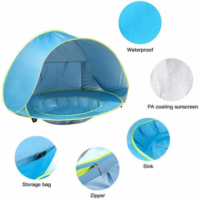 BabyTent è la soluzione perfetta per le calde giornate estive! Offre al tuo bambino un posto dove giocare e riposare all’ombra, al fresco e con protezione UV. Può essere assemblato in soli 3 secondi con il design automatico e il divertimento può iniziare.