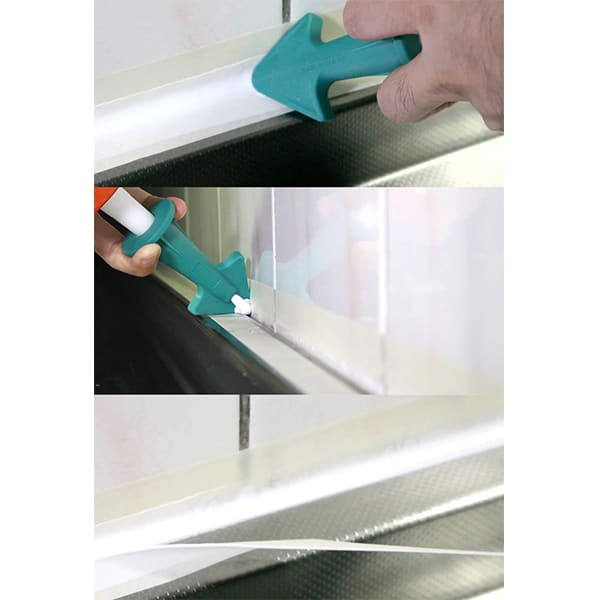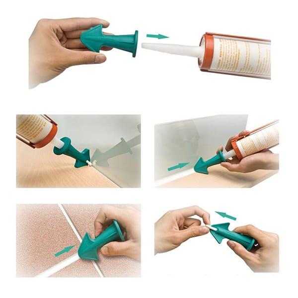 Per un'accurata siliconizzazione di qualità dei giunti di un bagno ci vuola una mano calma ed esperta. Dei giunti ben sigillati evitano che si accumuli umidità, muffe e che penetrino tra le fenditure degli elementi del bagno o nelle mattonelle. Il tubetto di silicone sigillante viene in genere dotato di un cono per l'applicazione, ma per avere una superficie bella e uniforme c'è bisogno di spalmare il silicone con la mano o con un utensile arrotondato. Ciò da vita ad un grosso ammasso, ed i giunti non saranno mai pari ed uniformi. Grazie ai nostri attacchi, sarete in grado di eseguire facilmente tale compito in modo professionale, senza avere mai più ammassi irregolari, giunti rugosi.