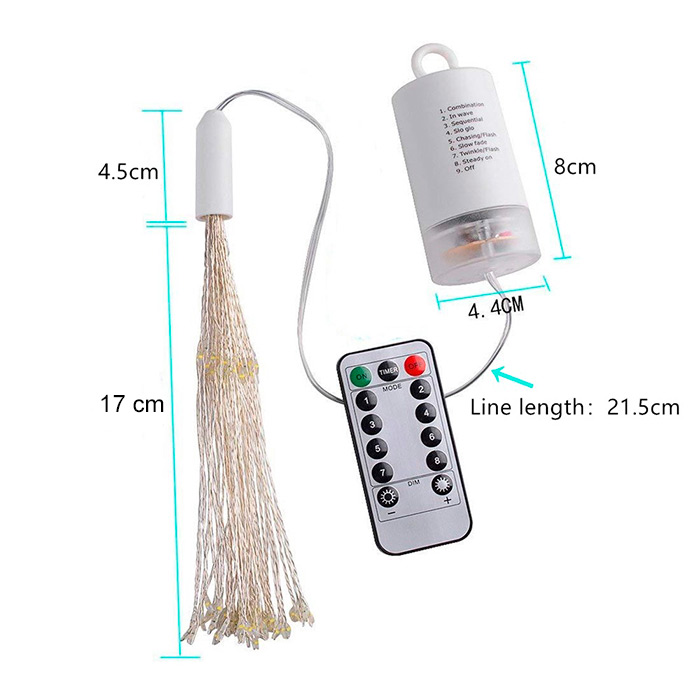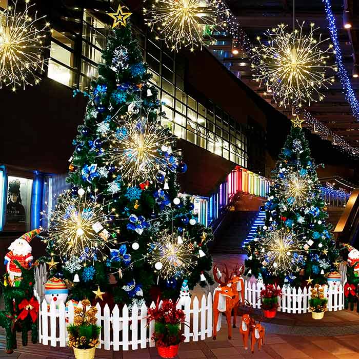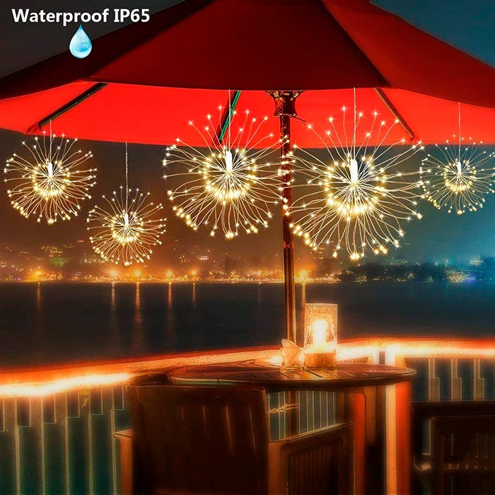 Le luci di Natale hanno un meraviglioso effetto fuochi d’artificio. La decorazione di Capodanno contiene 60 fili con 120 luci LED, che puoi piegare a tuo piacimento. Le luci di Capodanno sono adatte per la decorazione esterna (balcone, terrazza, piante nel tuo giardino, ecc.) e per la decorazione interna (albero di Natale, decorazioni appese al soffitto, ecc.)!