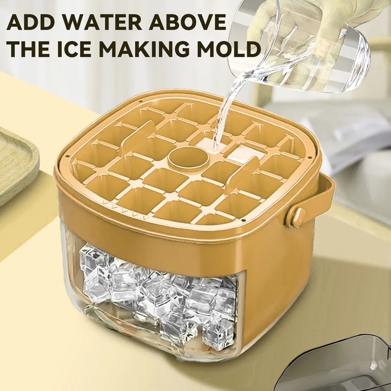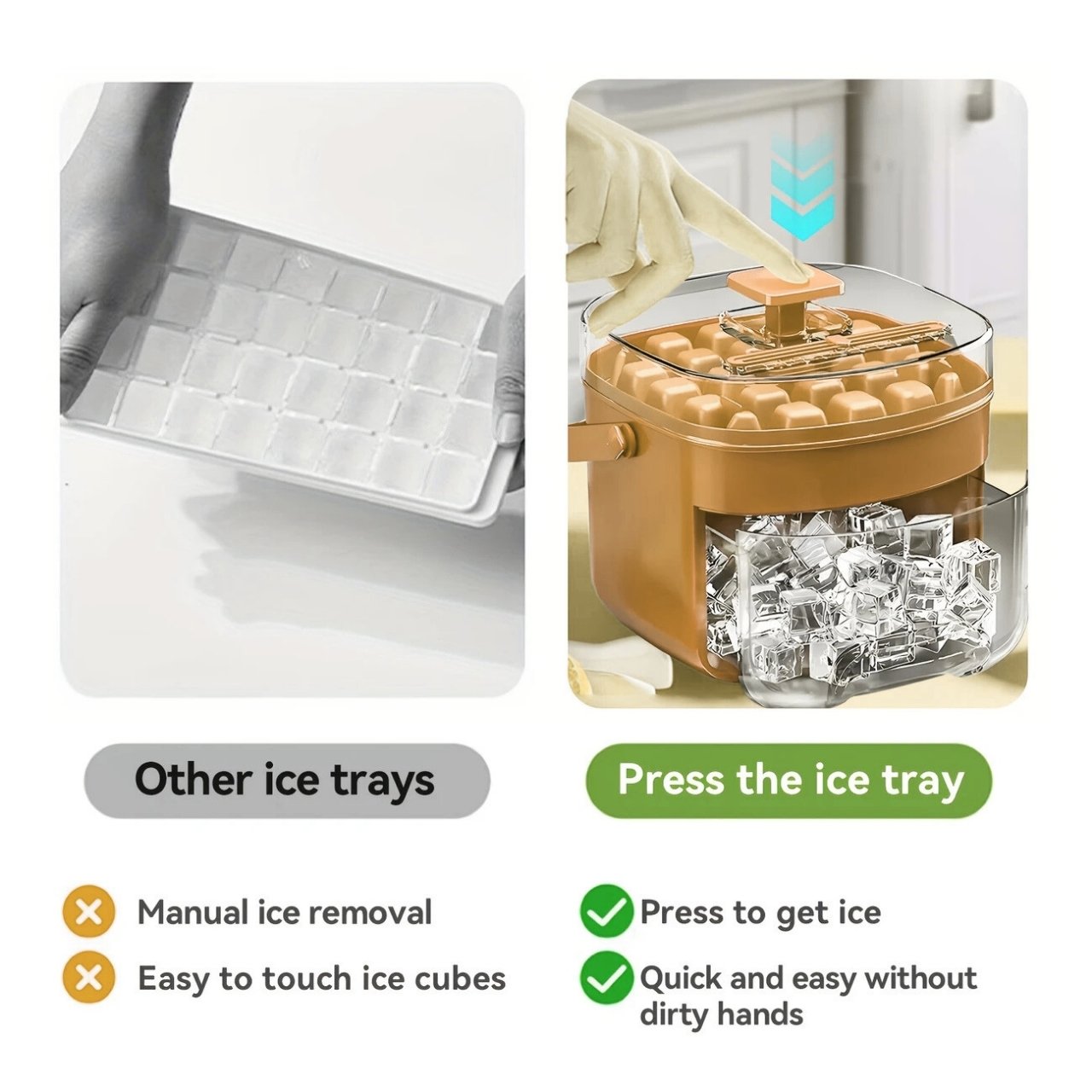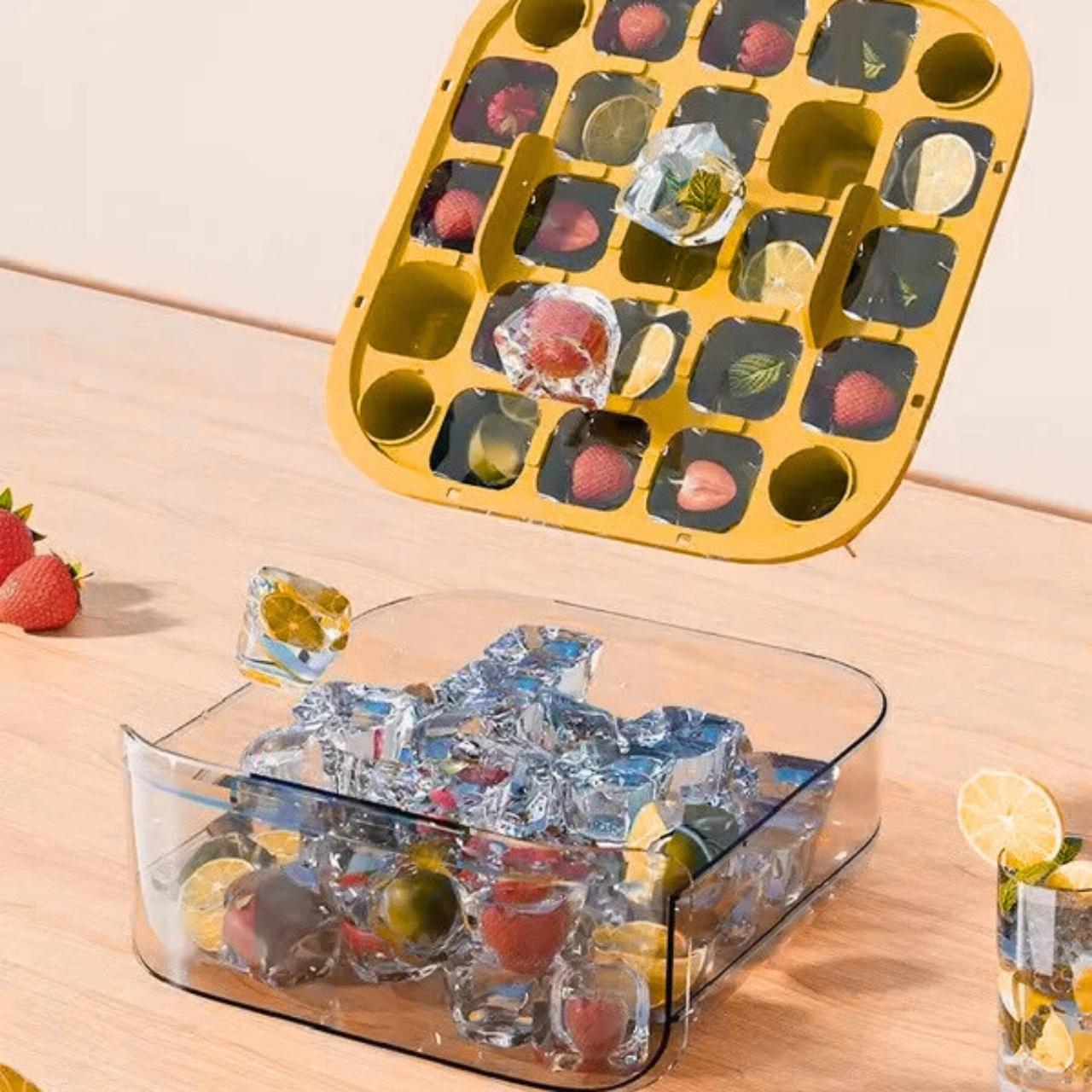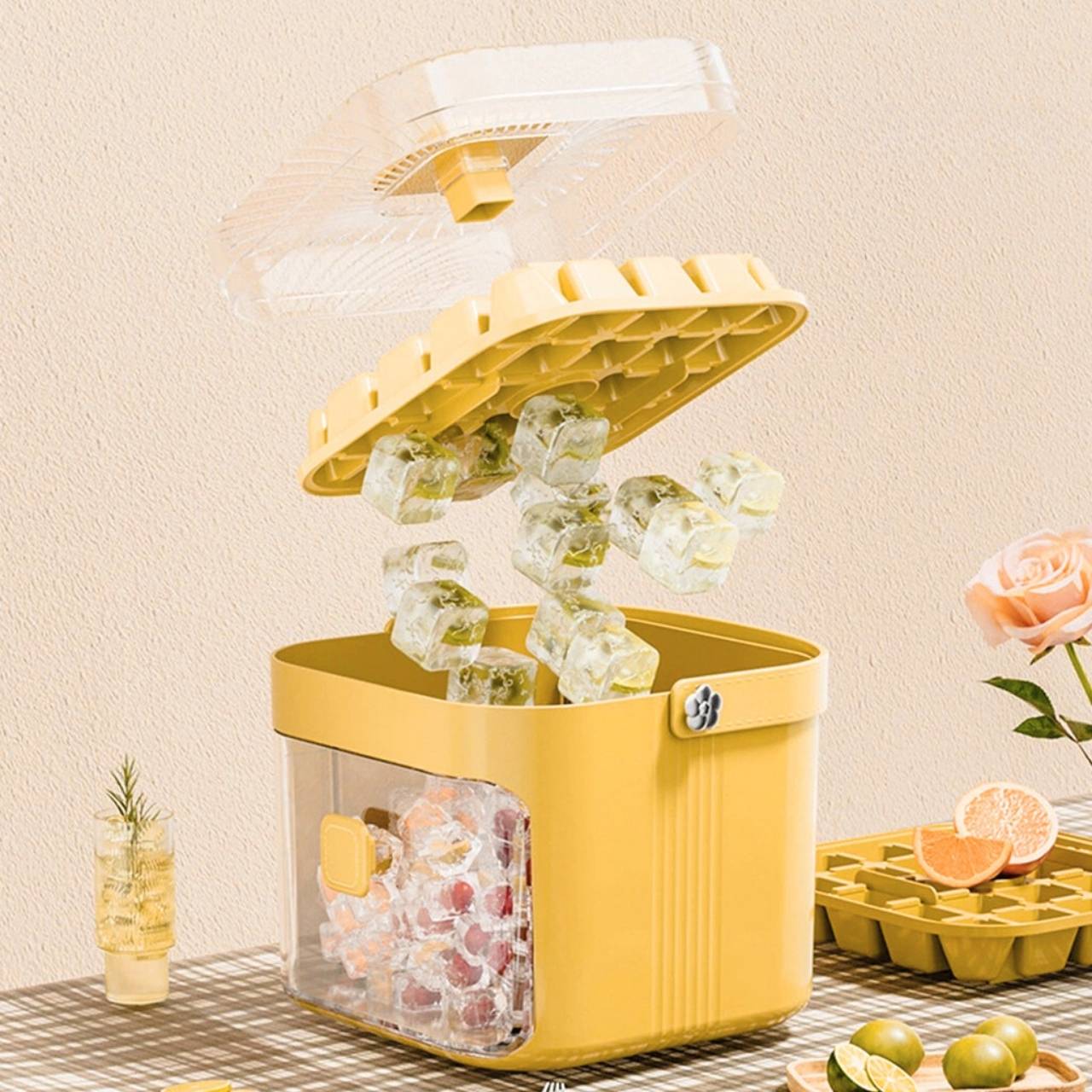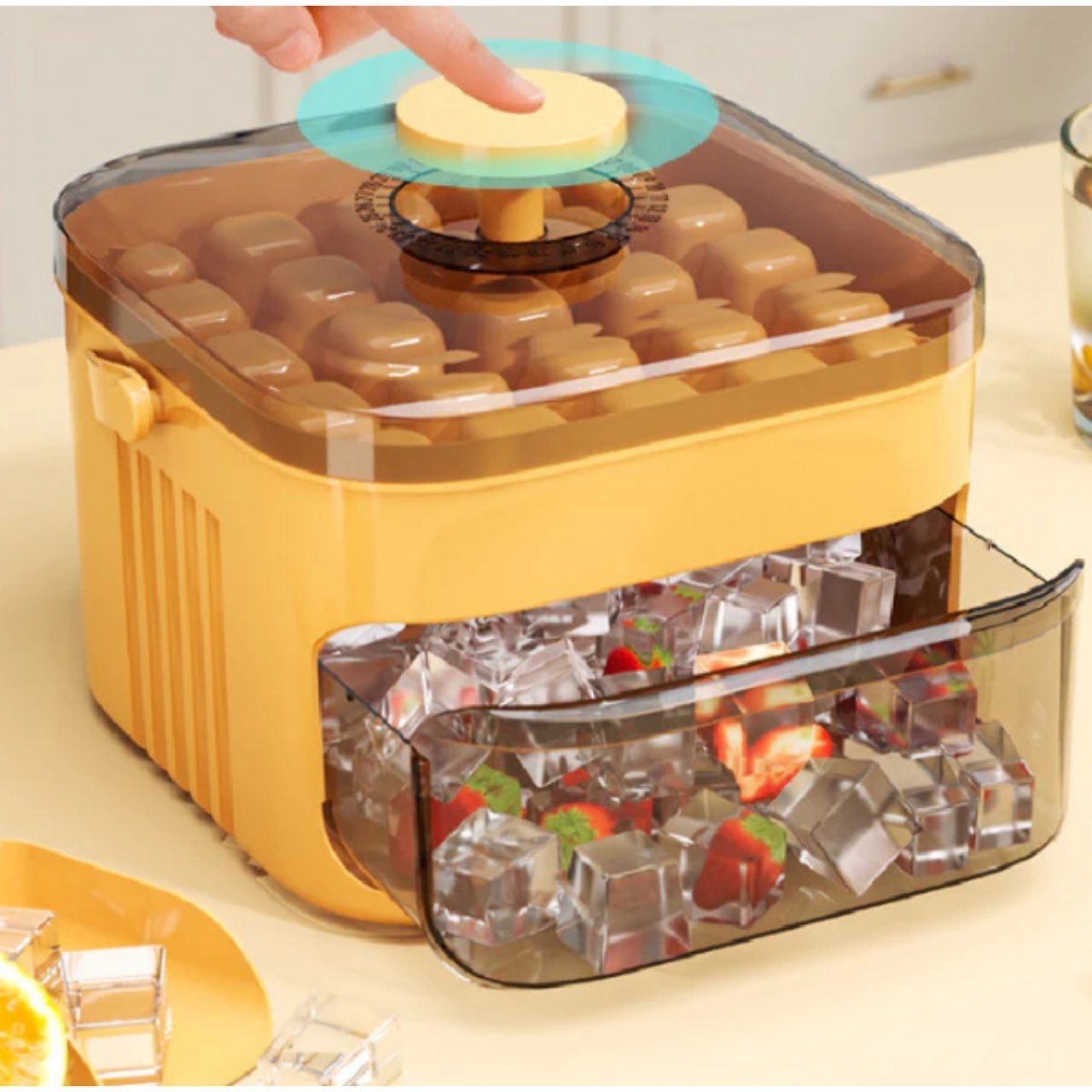 Versa acqua nel contenitore e chiudi il coperchio. Metti nel congelatore per un tempo sufficiente affinchรฉ si formi il ghiaccio. Una volta congelato, premi il pulsante in alto e i cubetti di ghiaccio verranno rilasciati nel contenitore in basso. Non esporre a calore diretto. Si consiglia di pulire prima del primo utilizzo. Non adatto per l'uso nel microonde.