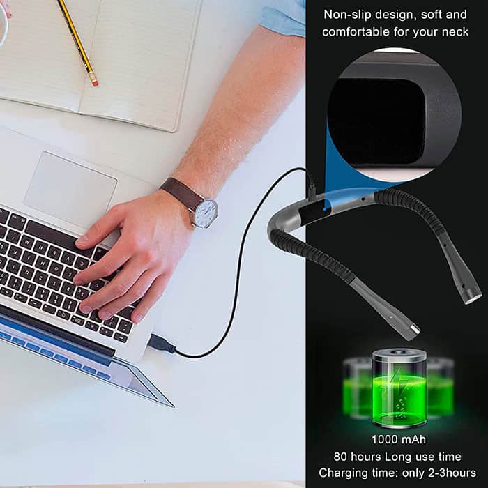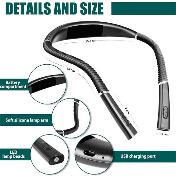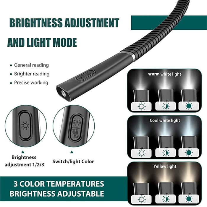 Una luce da lettura รจ la scelta ideale non solo per leggere ma anche per molte altre attivitร . La luce led รจ pieghevole, quindi puoi regolarla a tuo piacimento! Appendila al collo per tenere le mani libere! Il grande vantaggio di questa luce da lettura รจ che puoi scegliere tra due colori di luce (giallo e bianco) e impostare una delle 3 intensitร di luce (normale, media e forte).
