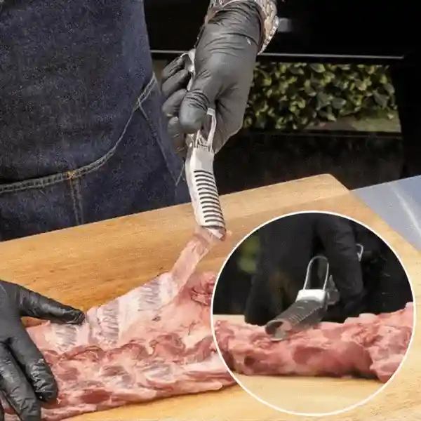 Lo strumento professionale per una rimozione della membrana rapida, facile e igienica dalle costine – come in un ristorante, direttamente nella tua cucina! Per una migliore assorbimento della marinata, una cottura piรน uniforme e un risultato perfetto.
