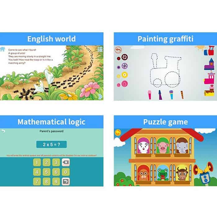 Tuo figlio ha un tablet tutto suo, dove può guardare i contenuti che i genitori preparano per lui. Il tablet offre il controllo genitoriale, così puoi controllare i contenuti e il tempo trascorso sul tablet!