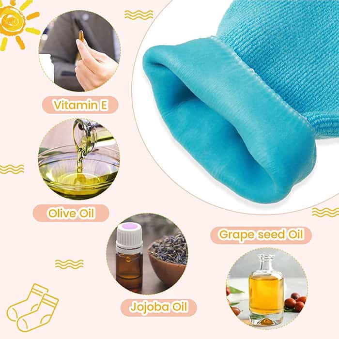 Le calze in silicone hanno un rivestimento in gel che รจ arricchito con tutte le importanti vitamine e ingredienti per ammorbidire la pelle dura e screpolata!