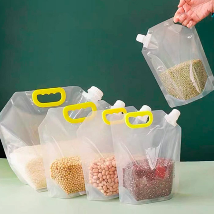Il set comprende 3 sacchetti di diverse dimensioni (1,5l, 2,5l e 5l)! I sacchetti per la conservazione di liquidi e alimenti sono riutilizzabili e il tuo cibo rimarrร al sicuro da umiditร e tarme!